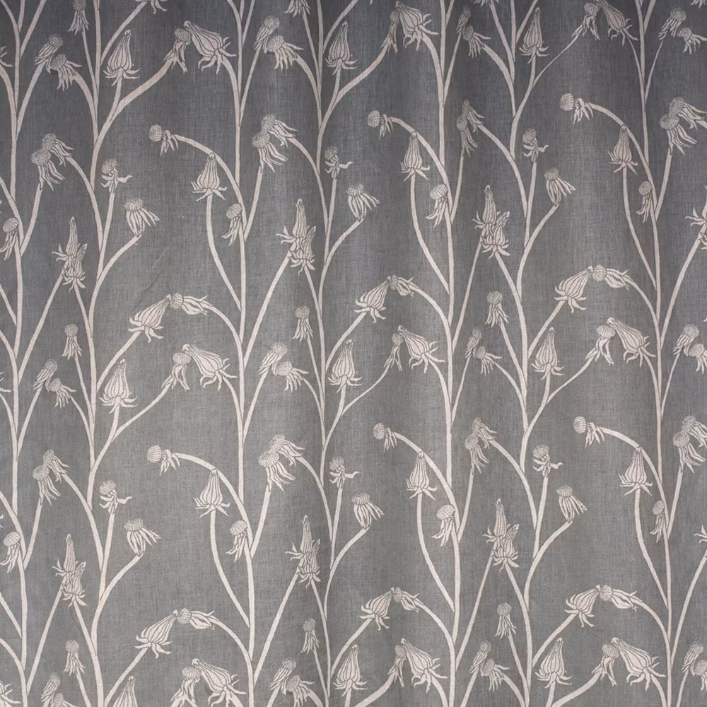 Handtryckta maskrosgirlanger kan du beställa per meter, trycks på melerat lin ca 145 cm bred och finns i olika färger.