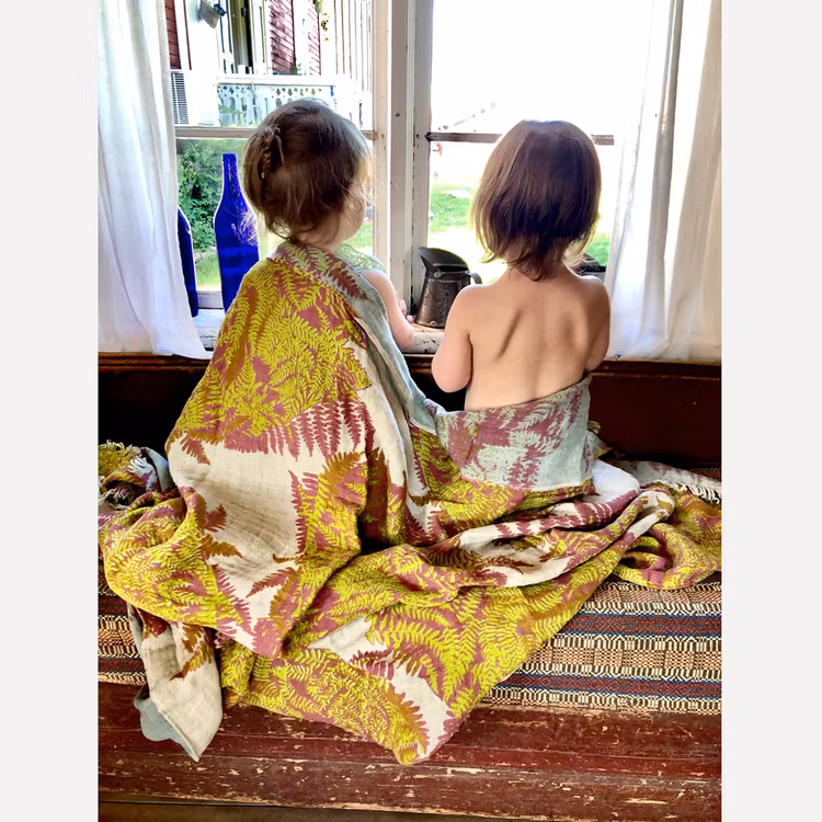 Alla textilier trycks för hand.
